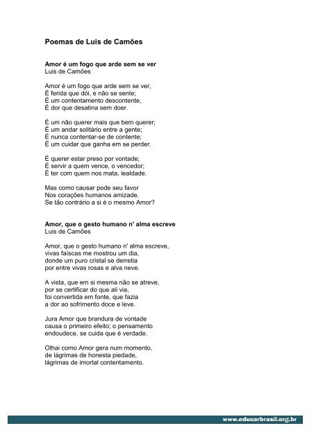 Portefólio de Português *.*: Poemas de Luís Vaz de Camões from 2.bp.blogspot.com Amor é fogo que arde sem se ver; Hijo de simao vaz de camões y de ana de sá e macedo. The most sublime figure in the history of portuguese literature, camões owes his lasting fame to his epic poem.